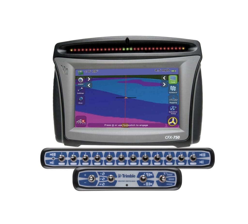 El display Trimble CFX-750 cuenta con pantalla a color táctil de fácil manejo y guía visual de led para mantener el camino correcto. El GPS incorporado puede actualizarse para obtener mejores calidades y rangos de precisión con las señales OmniSTAR, RTX, RTK y GLONASS.