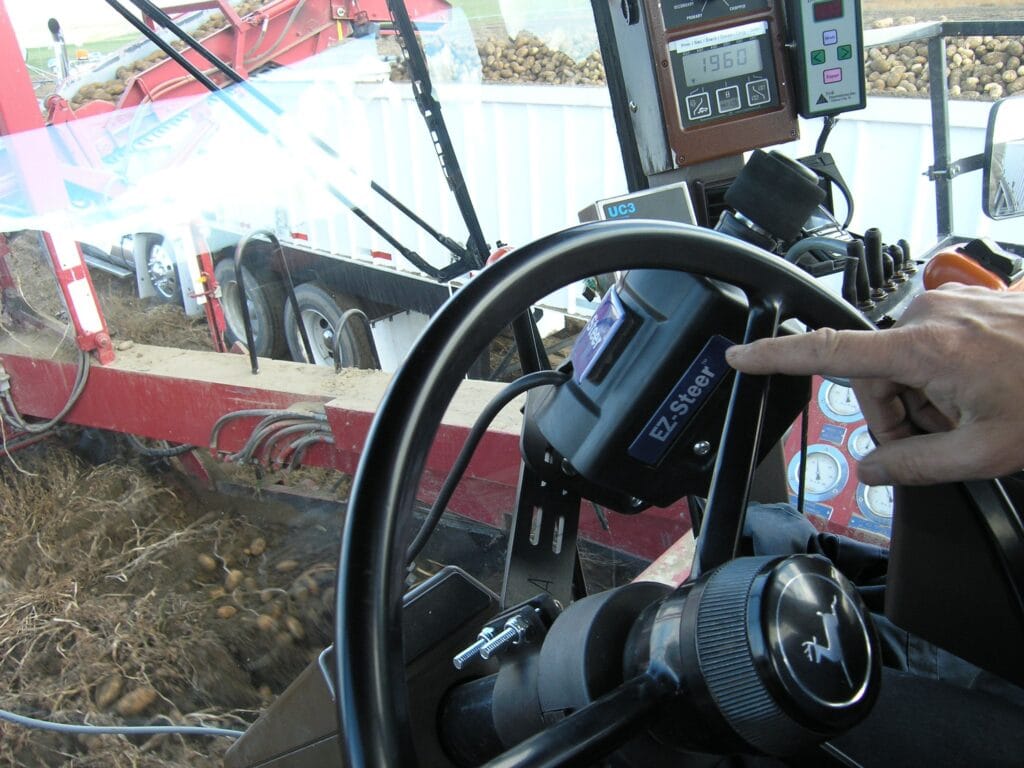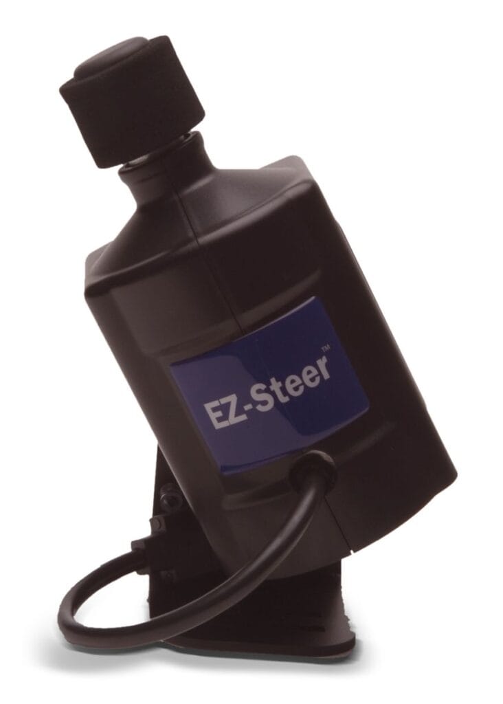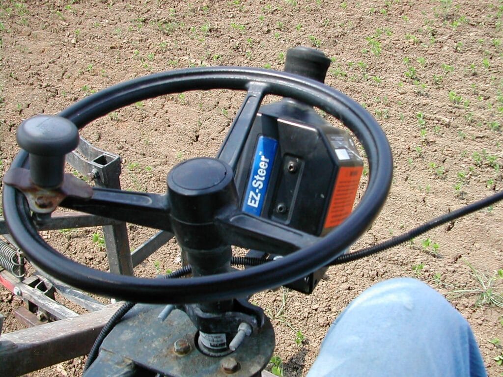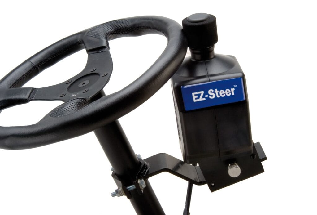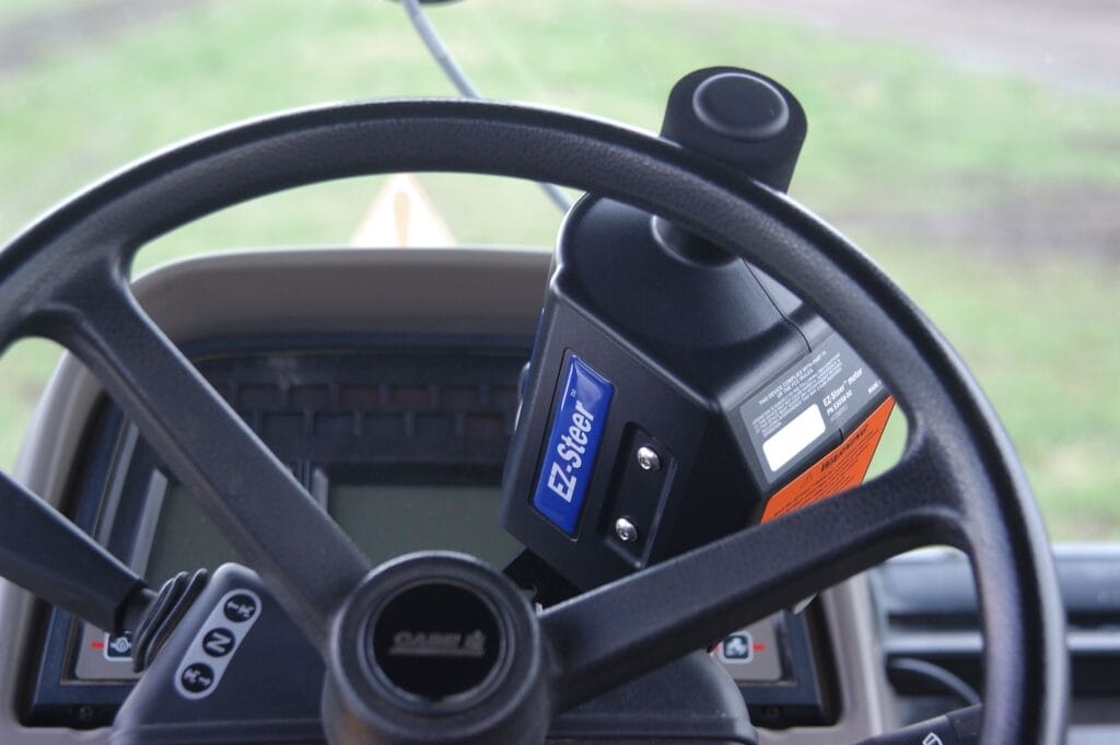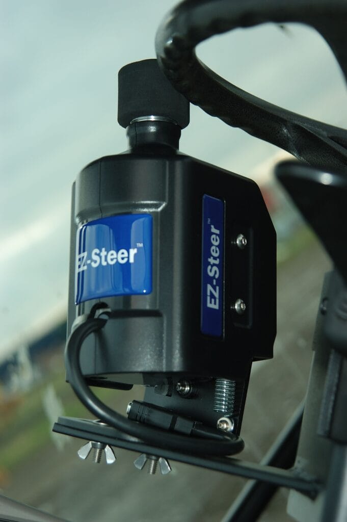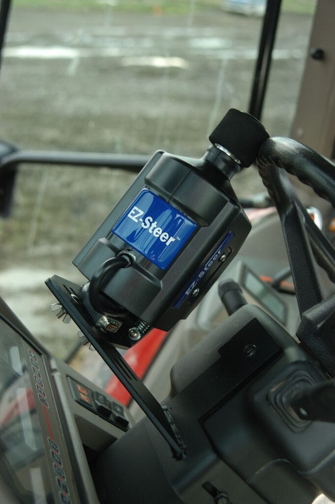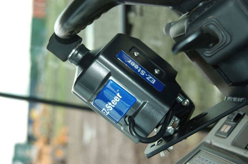 El sistema EZ-Steer® de ayuda al guiado conduce el volante por tí, utilizando una pequeña rueda de fricción y una barra de luces GPS Trimble. El EZ-Steer puede mantenerte en línea recta con una precisión de hasta 2.5cm gracias a la señal RTK y según la calidad del receptor, en cualquier terreno. De esta forma puedes dirigir tu atención a la operación que estás realizando, aplicación de tratamientos o siembra.